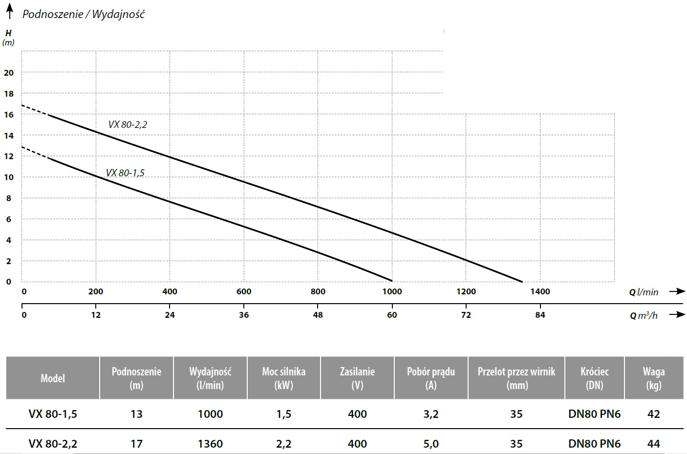 Pompa VX 80-1,5 400V z wirnikiem tnącym