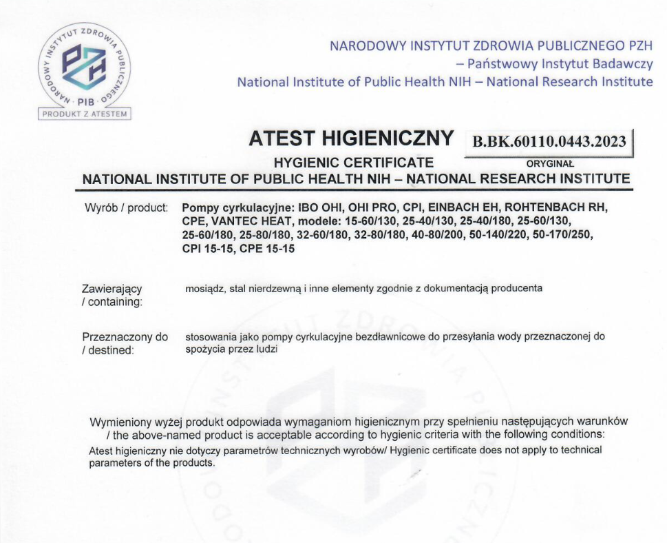 OHI PRO to seria pomp cyrkulacyjnych, bezdławicowych, o podwyższonej żywotności. W pompach zastosowano wałek z ceramiki o większej gęstości oraz łożyska ślizgowe. Wytrzymałość silnika oraz lepsze parametry elektryczne uzyskano poprzez zastosowanie uzwojenia w mocniejszej izolacji w klasie F. Przy produkcji pomp serii OHI PRO, wszystkie procesy produkcyjne wykonywane są przez roboty. Po każdym etapie produkcji roboty również sprawdzają jakość wykonania półproduktów.