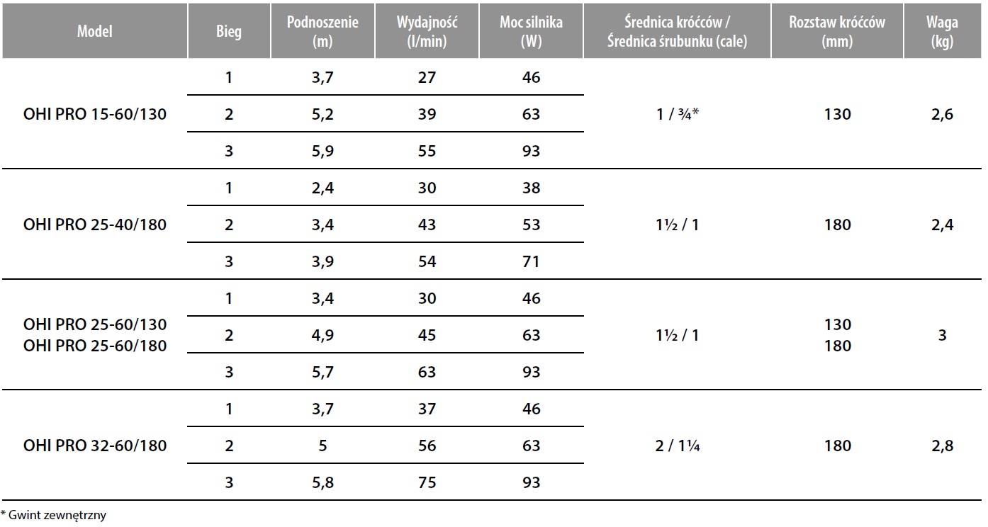 OHI PRO 25-60/130 pompa cyrkulacyjna do wody (pitnej)