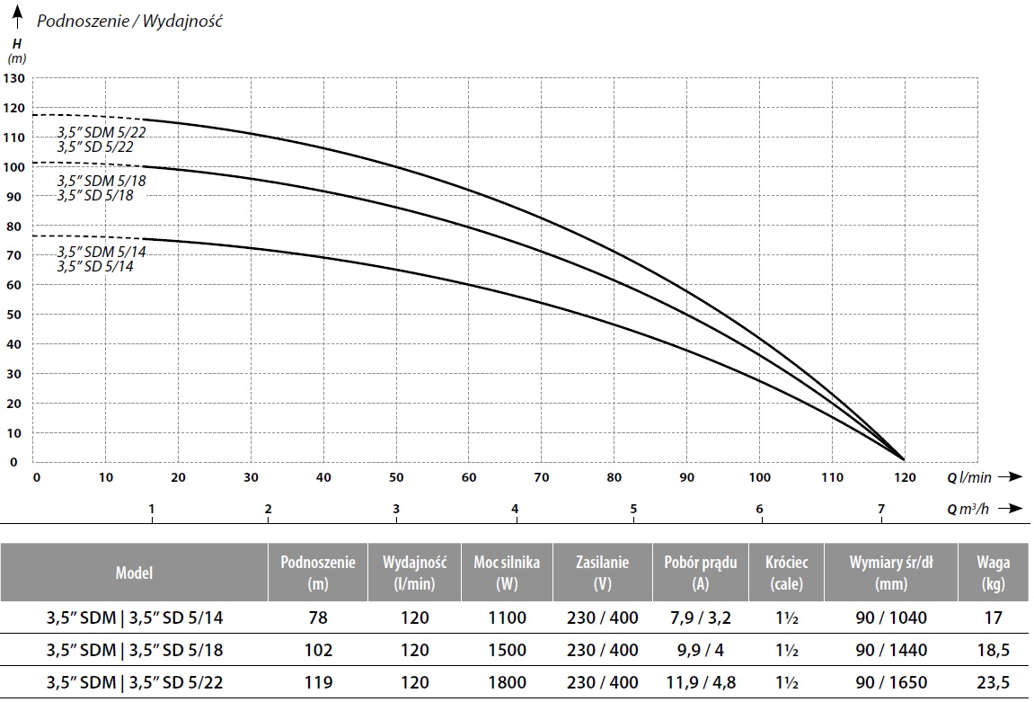 Pompa głębinowa 3,5 SD 5/14 1,1kW 400V + 20m przewodu