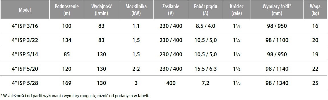 Wielostopniowe pompy głębinowe o średnicy 98 mm, w pełni wykonane ze stali nierdzewnej. Przeznaczone do instalacji w studniach o minimalnej średnicy wewnętrznej 115 mm. Pompy służą do zaopatrywania w wodę domów jedno- i wielorodzinnych, gospodarstw rolnych, a także do zasilania systemów nawodnieniowych (zraszaczy, linii kroplujących). Pompy mają zastosowanie również w przemyśle oraz odwodnieniach.