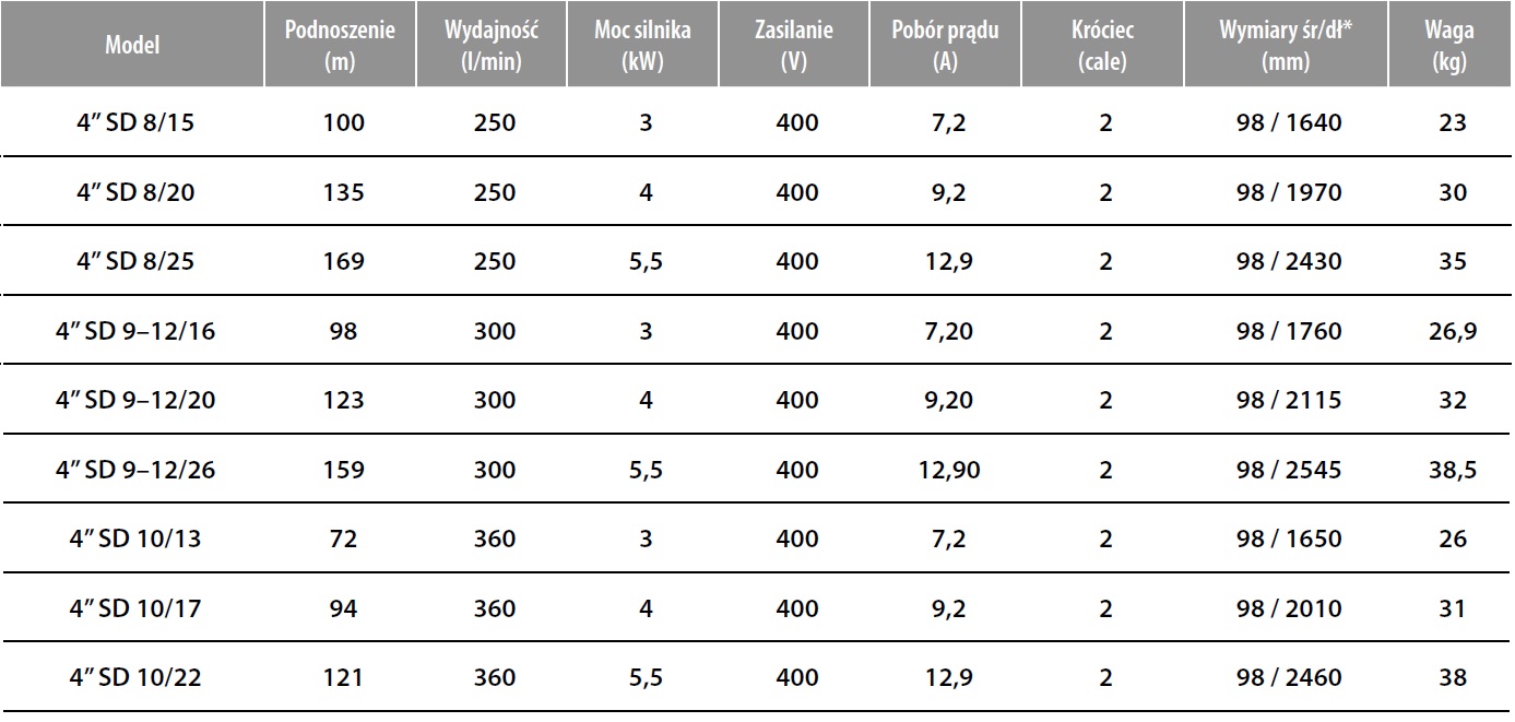 Pompa głębinowa 4" SD 10/17