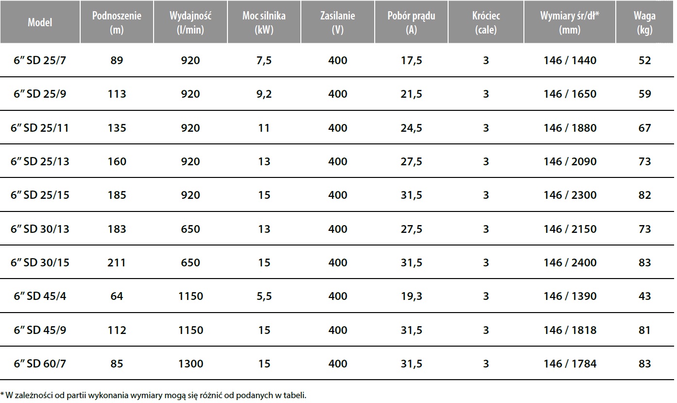 Pompa głębinowa 6 SD 25/9 9,2kW 400V